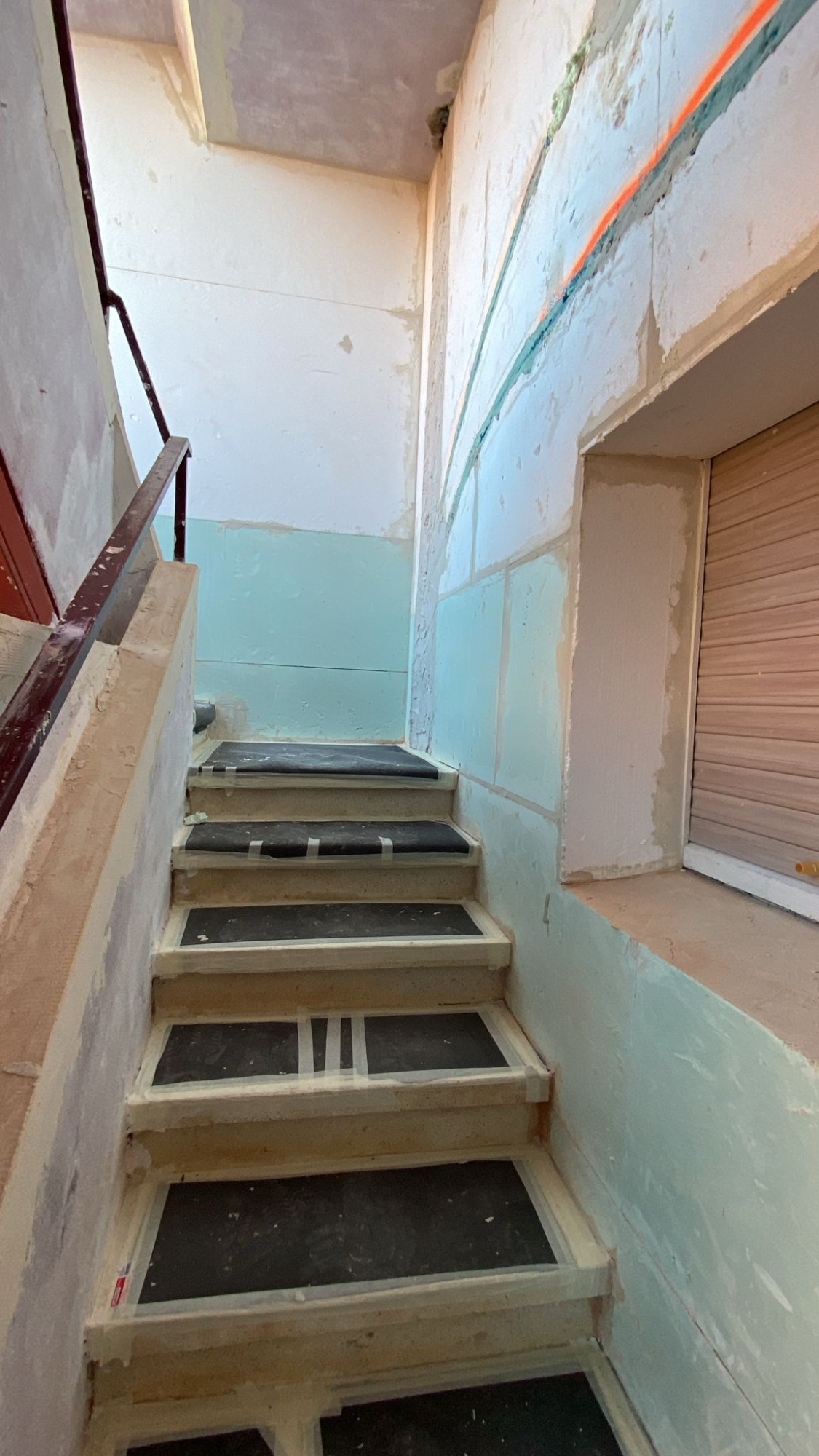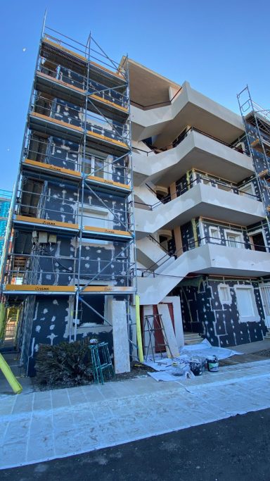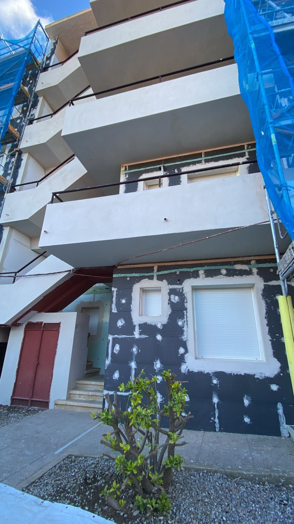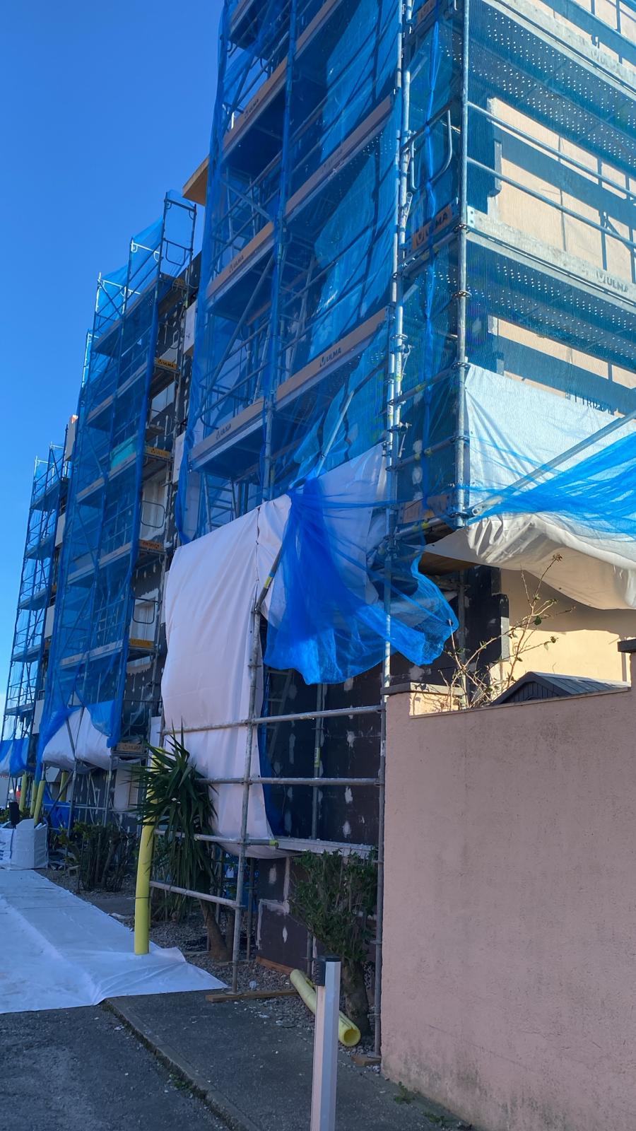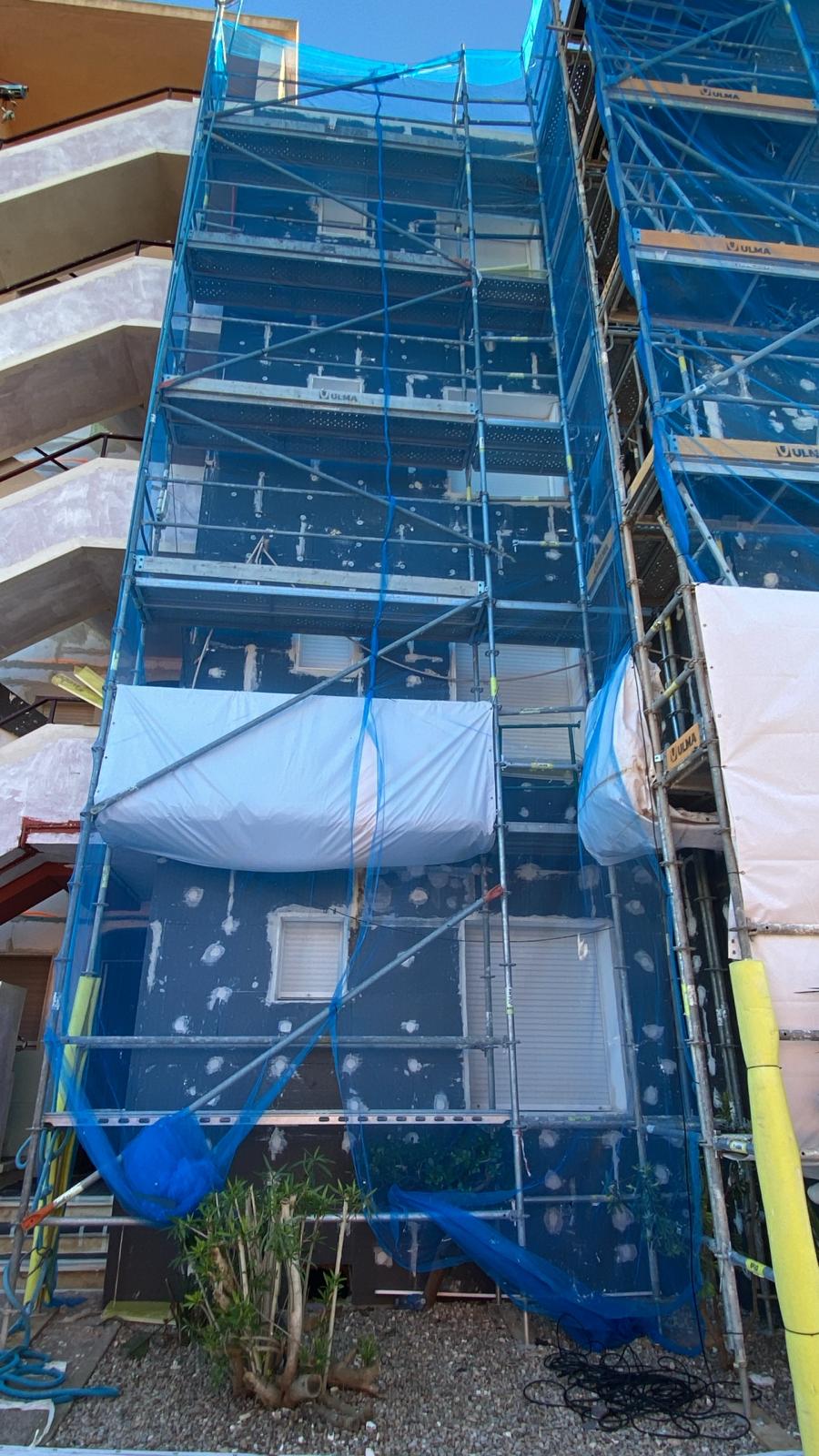 Se han acabado las obras de las paredes del edificio y del terrado. Y se ha empezado con la fachada que da al mar.